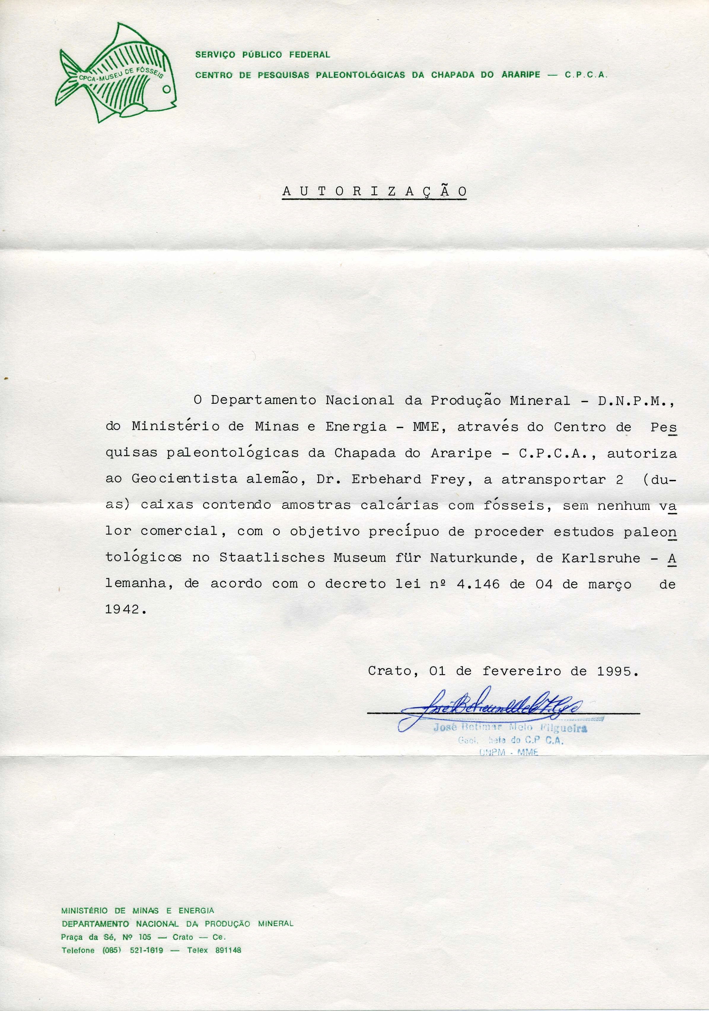After that interview, he closed with a reference to Sir Richard Owen digging bodies from graveyards to study human anatomy during the 1800s, in an attempt to justify his actions. Since then, #UbirajaraBelongsToBR has trended on Twitter in an attempt to repatriate the fossil. "Ubirajara" is not the first fossil to be illegally smuggled from Brazil, as the case for several undescribed remains from museums. However, researcher Eberhard "Dino" Frey has told may users Email that the holotype was exported legally, citing documents written in Portuguese. After further analysis, it is determined the documents appear to be genuine. They state the limestone fossils are "of no commercial value", which is a statement challenged by numerous evidence, and even the existence of an illegal fossil trade based on currency. Frey also states the team was to have a Brazilian member, who was kicked due to false documentation. This contradicts Martill openly admitting that he had not, and will not be working with a Brazilian, as Brazil's fossil laws cite as a necessity. Frey has not elaborated further on this unnamed team member. He briefly messaged inquiring people over Email, in one case, addressing a user with this response: